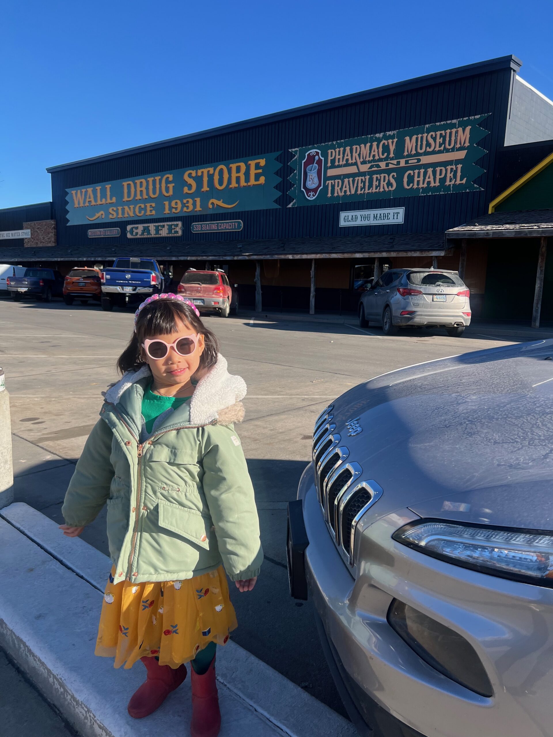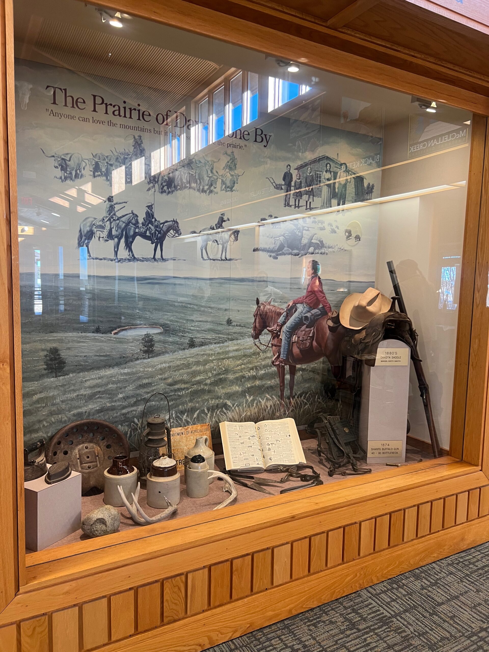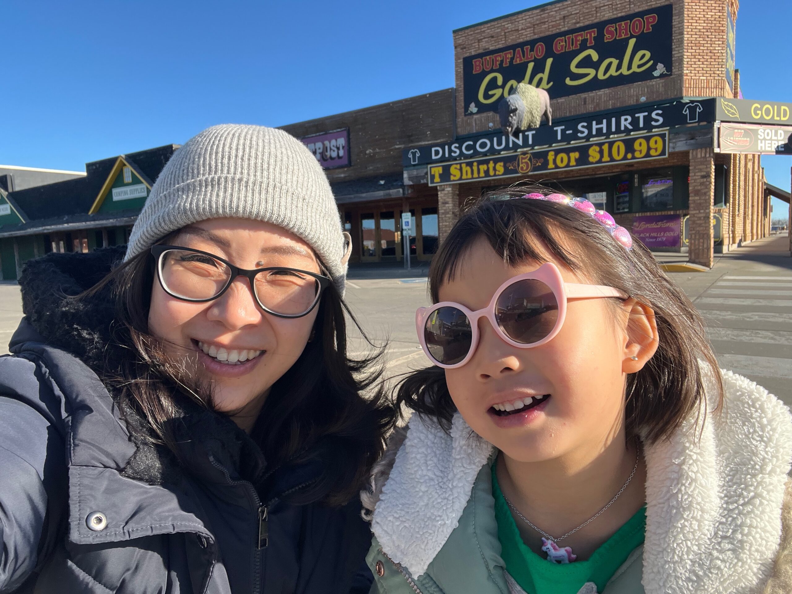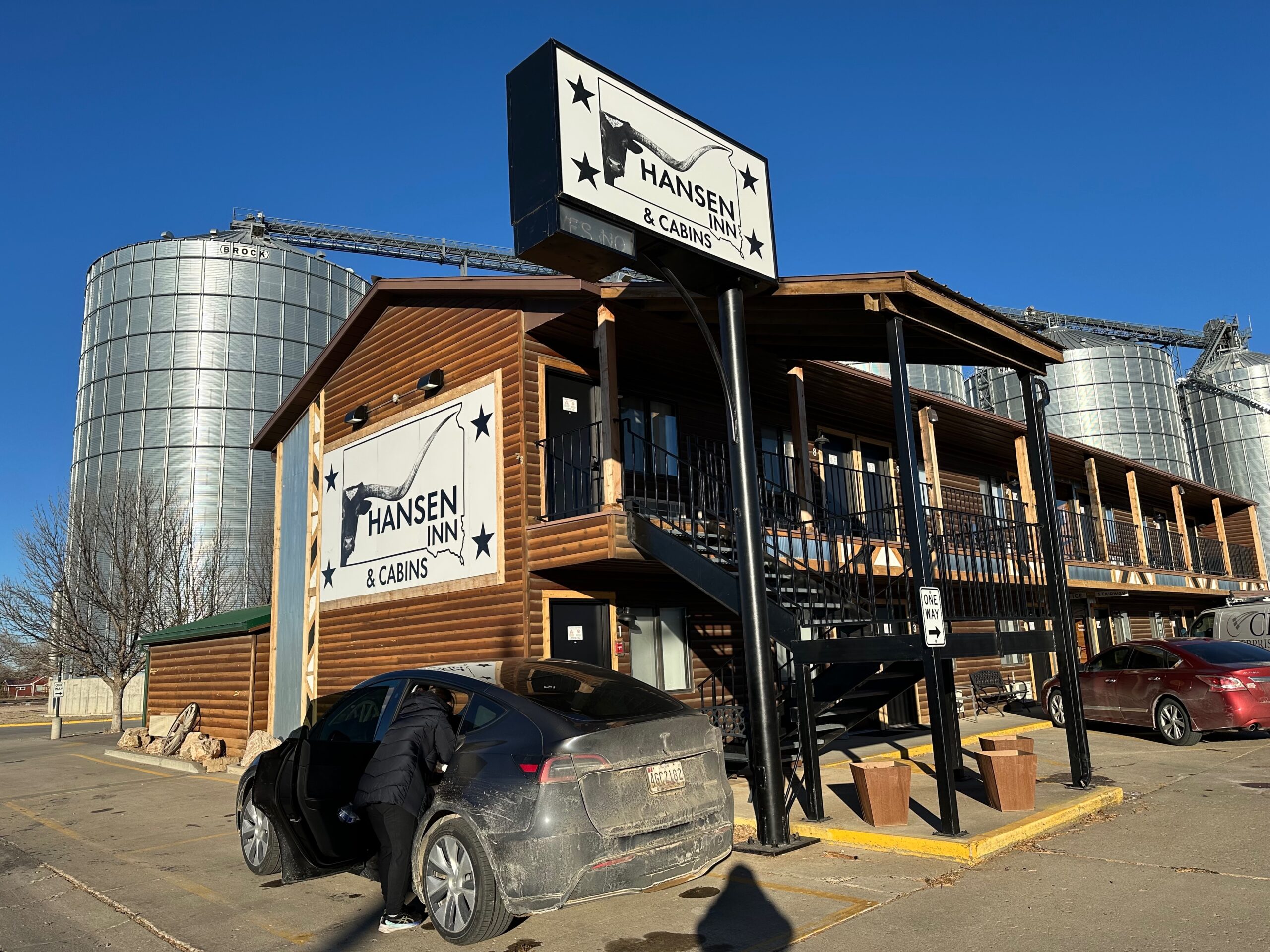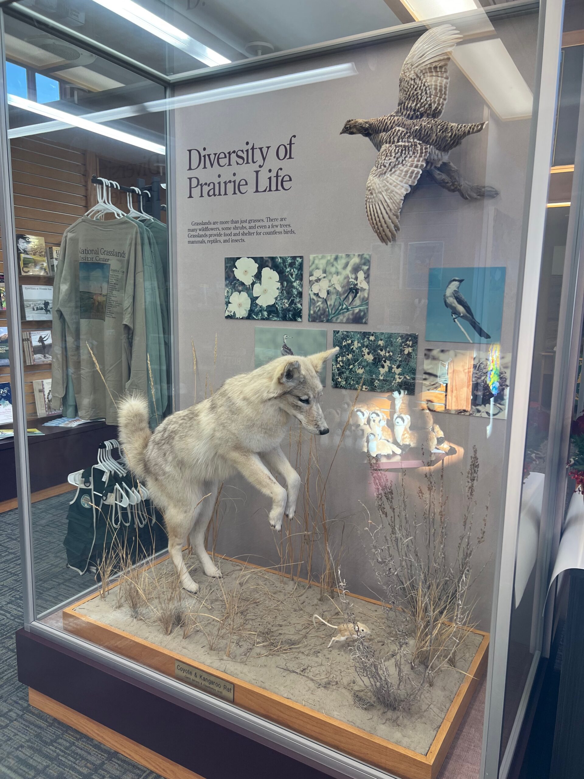 We began the day by checking out of our hotel, Hansen Inn & Cabins. If you’re ever in Wall, we highly recommend staying here. After checking out, we headed back to Wall Drug for breakfast, savoring the charming ambiance of this iconic spot once more. Our next stop was the National Grasslands Visitor Center, where we learned about the local flora and fauna. While inside the Visitor Center, I noticed a couple of guys hanging Christmas ornaments on the power lines outside. It was a quaint sight that highlighted how quiet and serene this town is in winter—they didn’t even need to block the road for their safety.