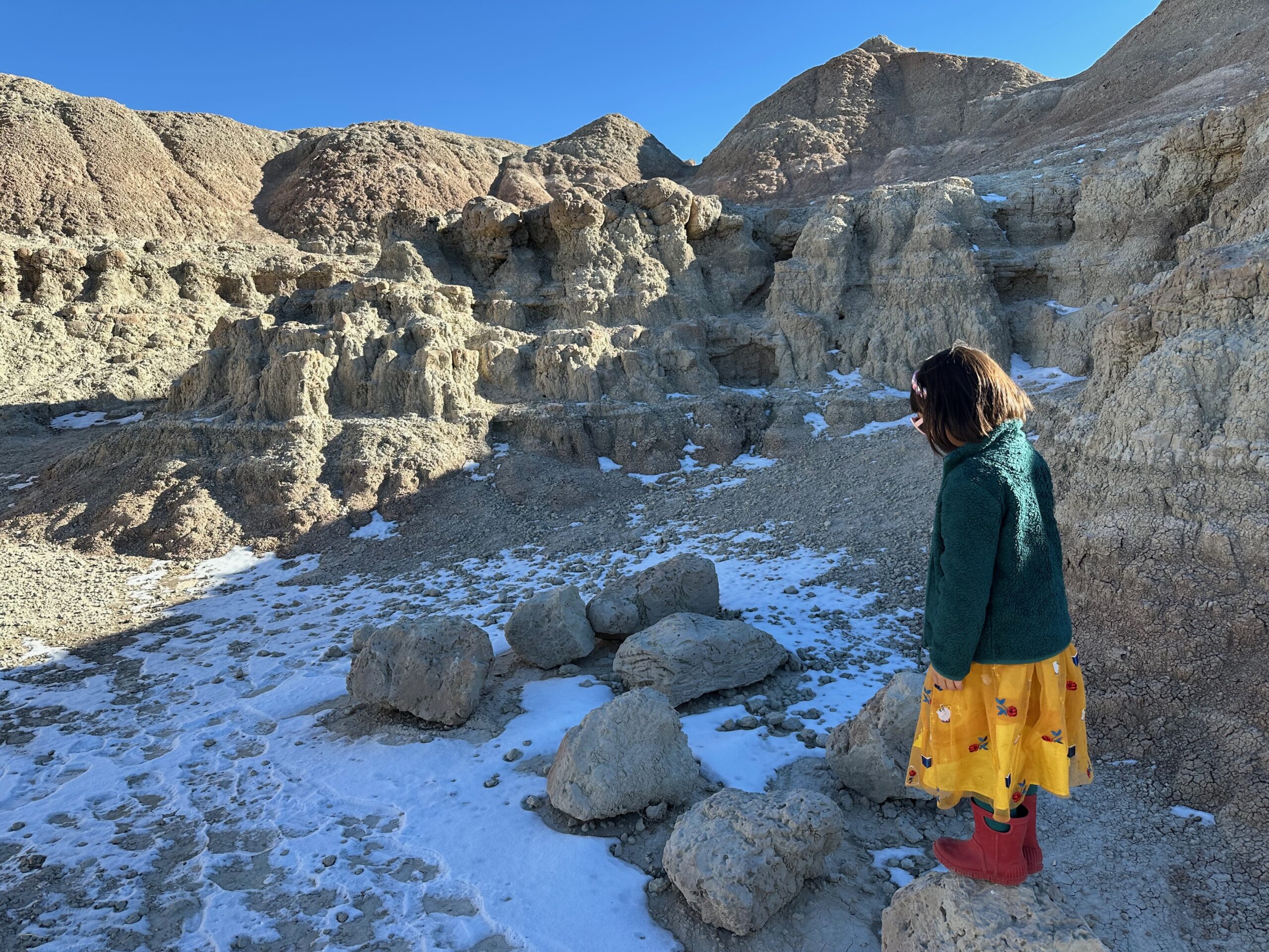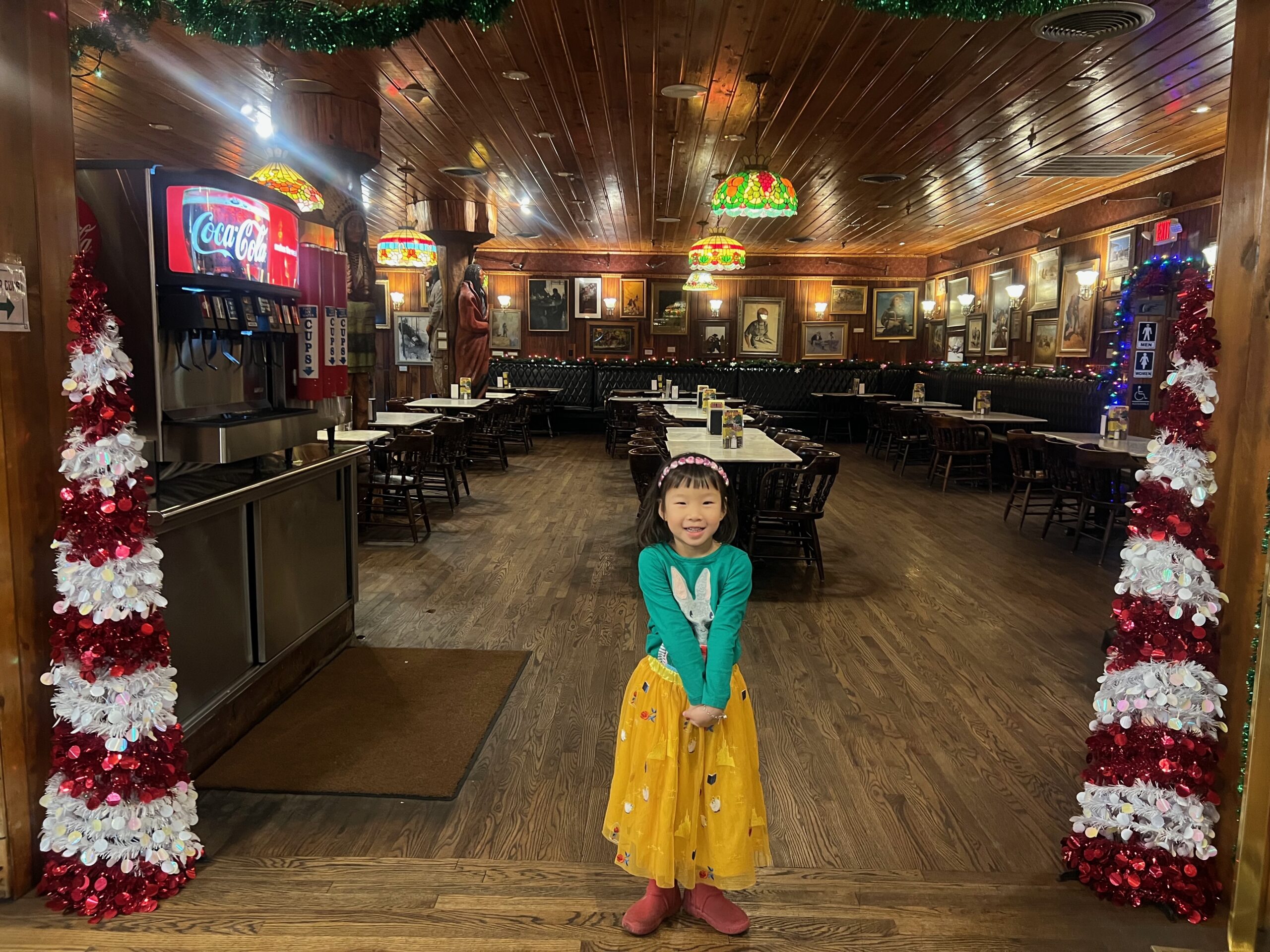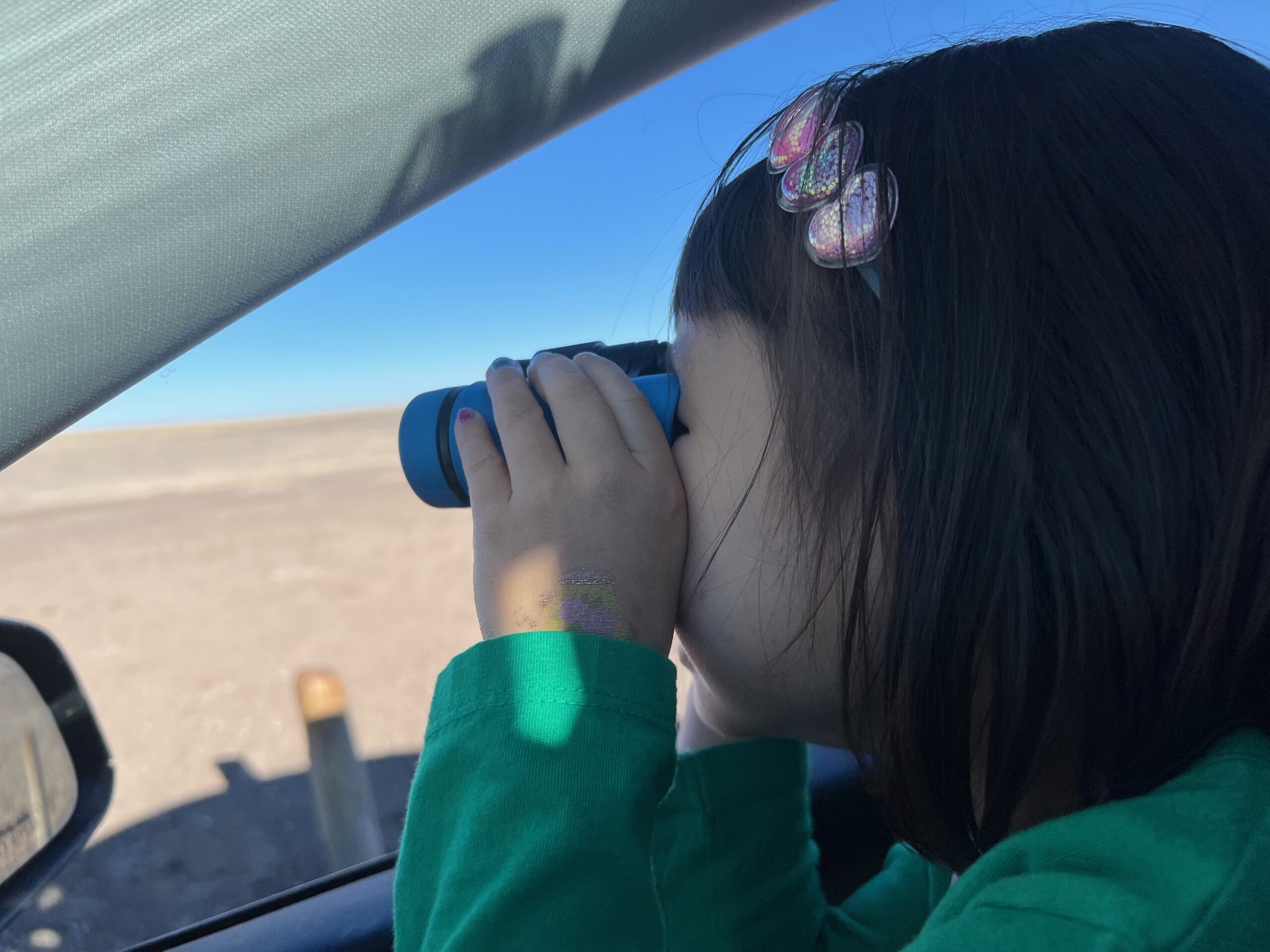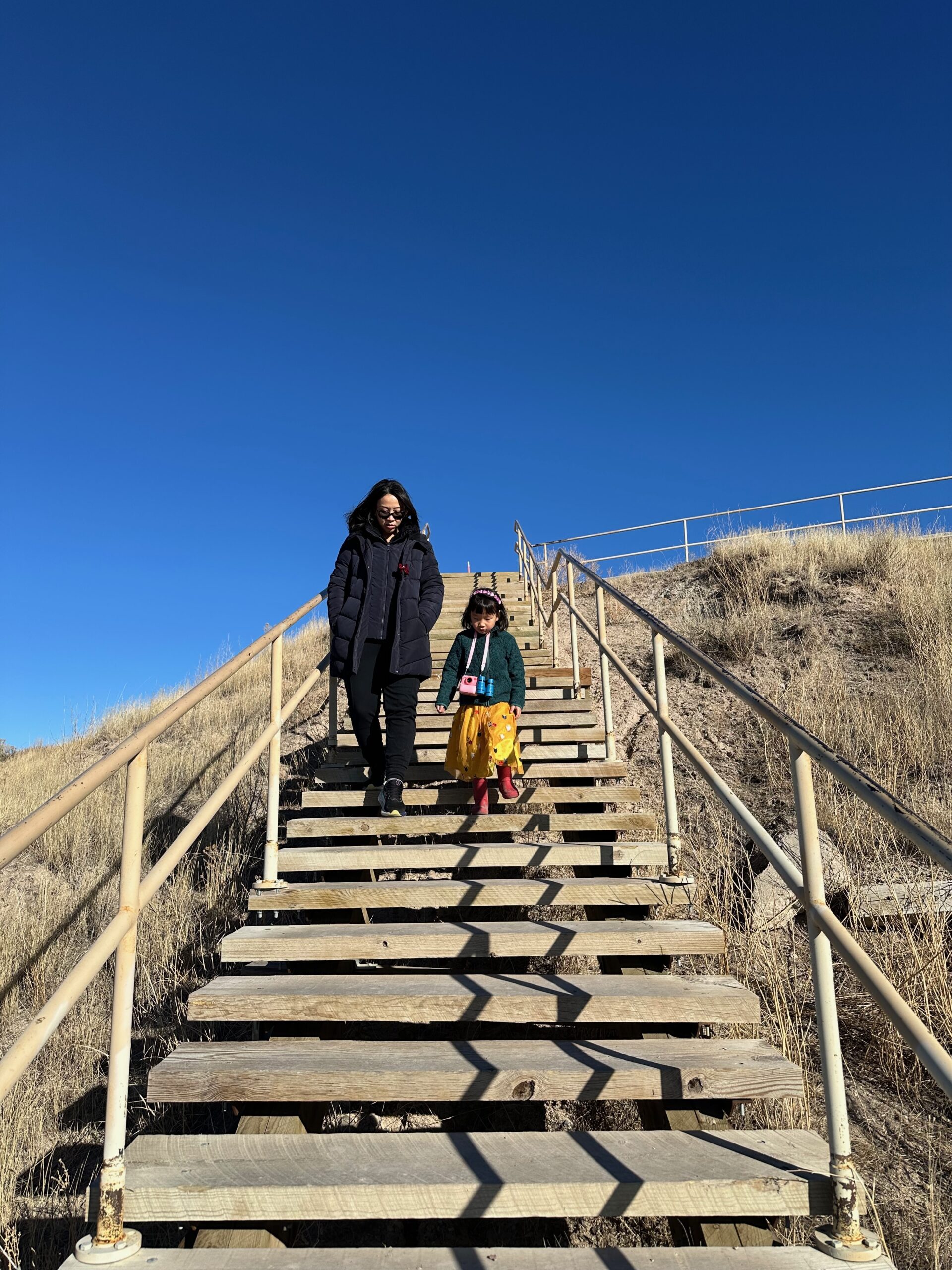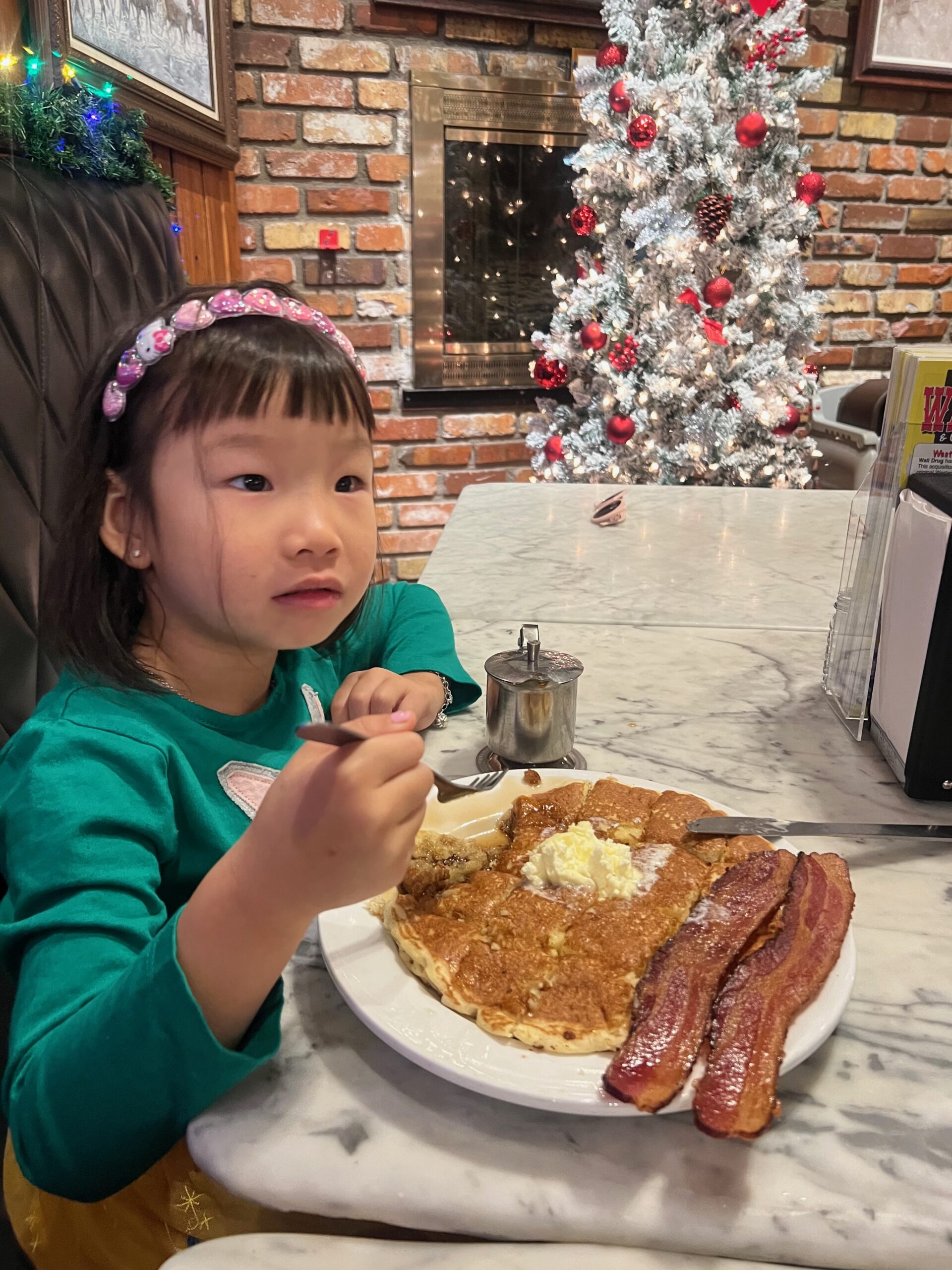 We began the day by checking out of our hotel, Hansen Inn & Cabins. If you’re ever in Wall, we highly recommend staying here. After checking out, we headed back to Wall Drug for breakfast, savoring the charming ambiance of this iconic spot once more. Our next stop was the National Grasslands Visitor Center, where we learned about the local flora and fauna. While inside the Visitor Center, I noticed a couple of guys hanging Christmas ornaments on the power lines outside. It was a quaint sight that highlighted how quiet and serene this town is in winter—they didn’t even need to block the road for their safety.
