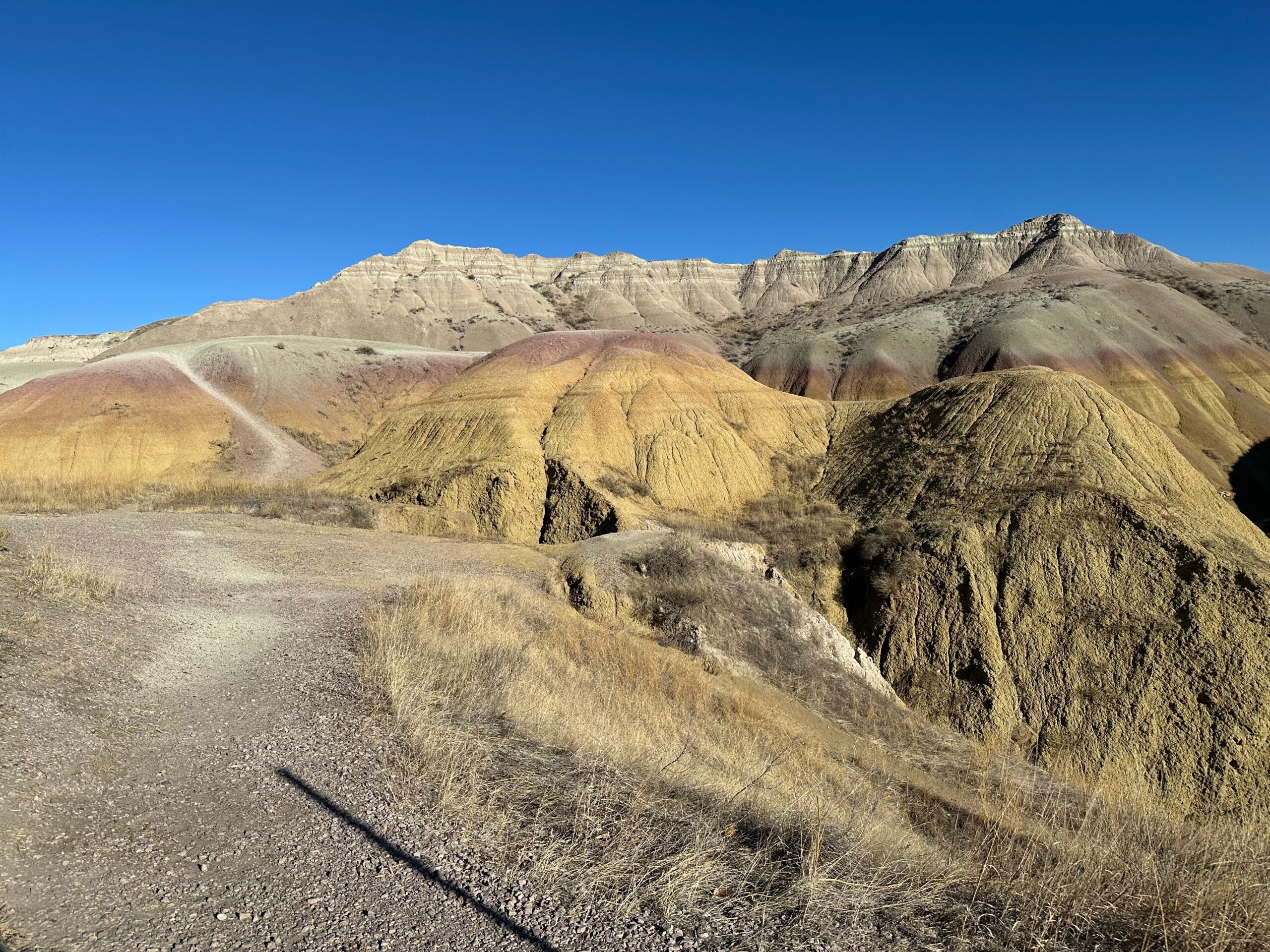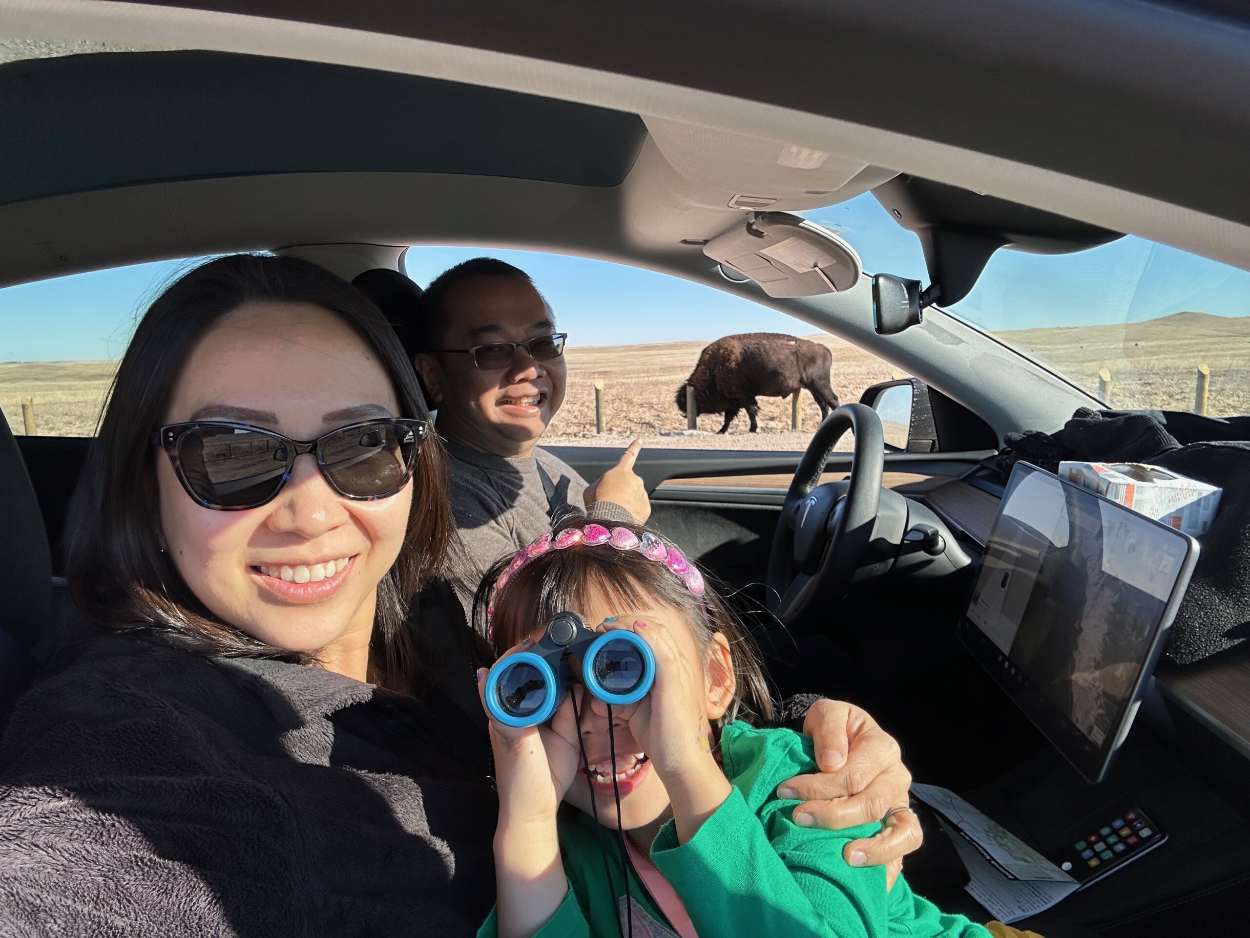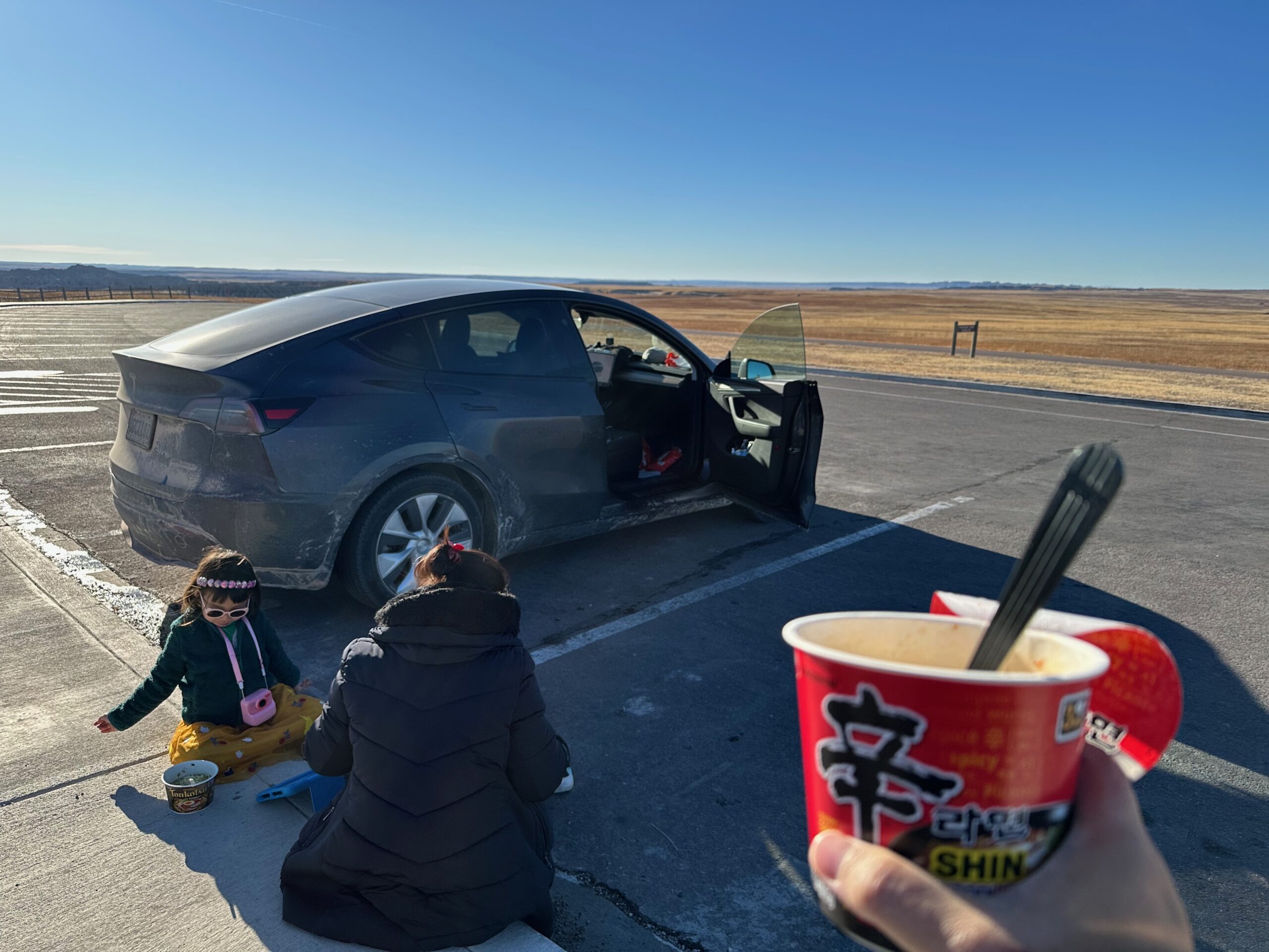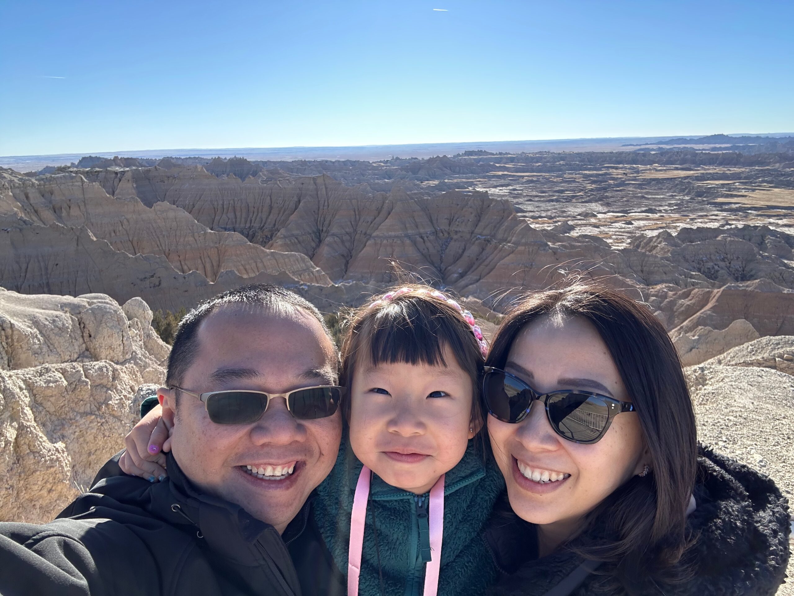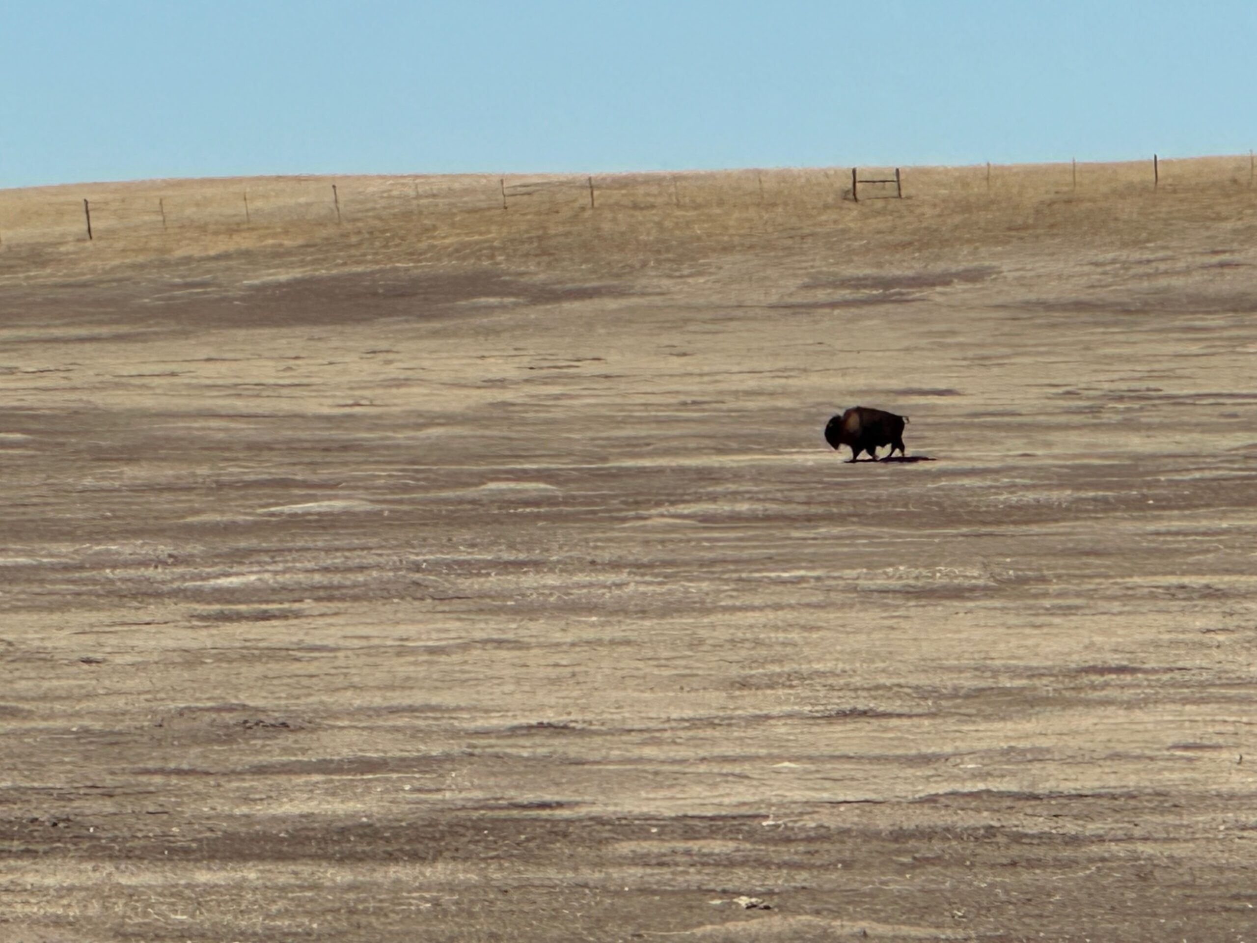 We then headed into the Badlands, opting to take the road directly south of Wall for our entry. This National Park is truly a marvel, with its striking landscapes and unique beauty. Visiting during winter meant that we almost had the park to ourselves, encountering only two or three other cars throughout the day. This solitude allowed us to stop wherever we wanted and get up close to the wildlife. One memorable encounter was with a bison, which was casually scratching itself on a road post before crossing the road right in front of us. We even had the chance to relax and have lunch at one of the overlooks, taking in the breathtaking views. It was truly an amazing experience and a fantastic start to our road trip.